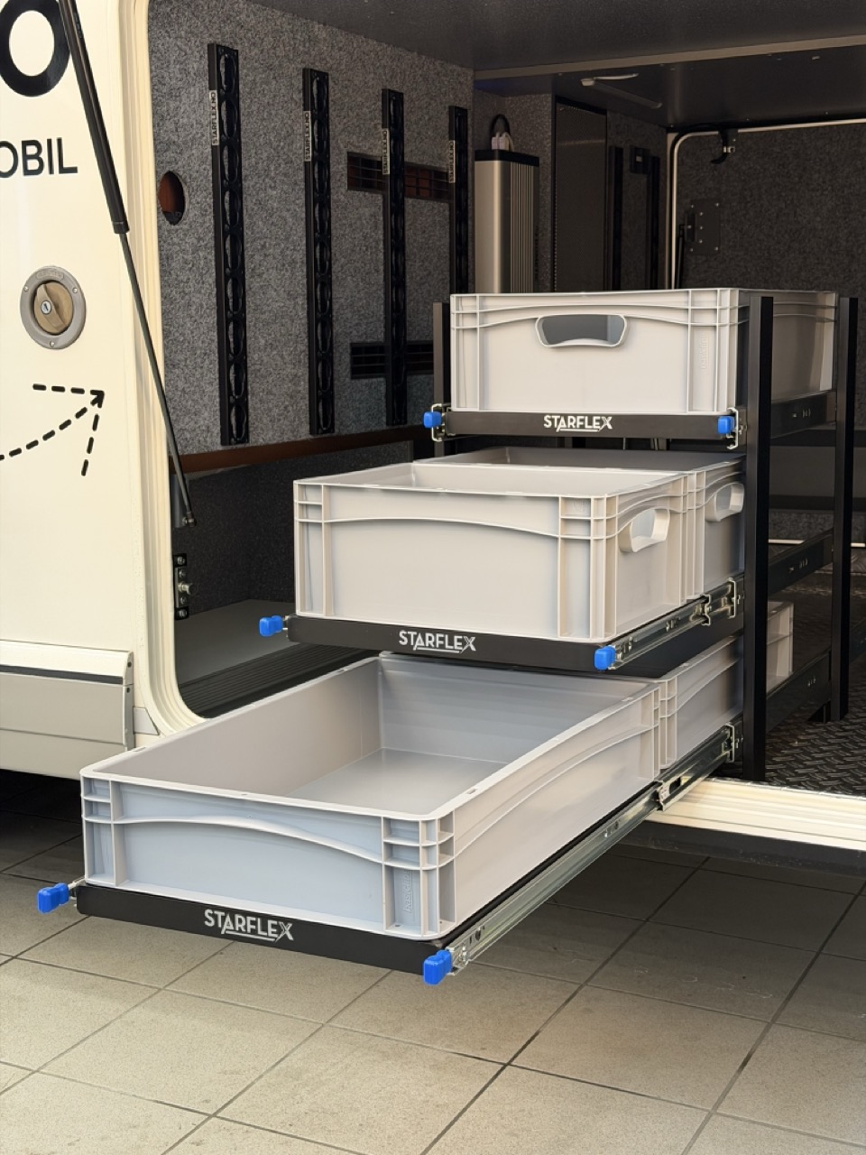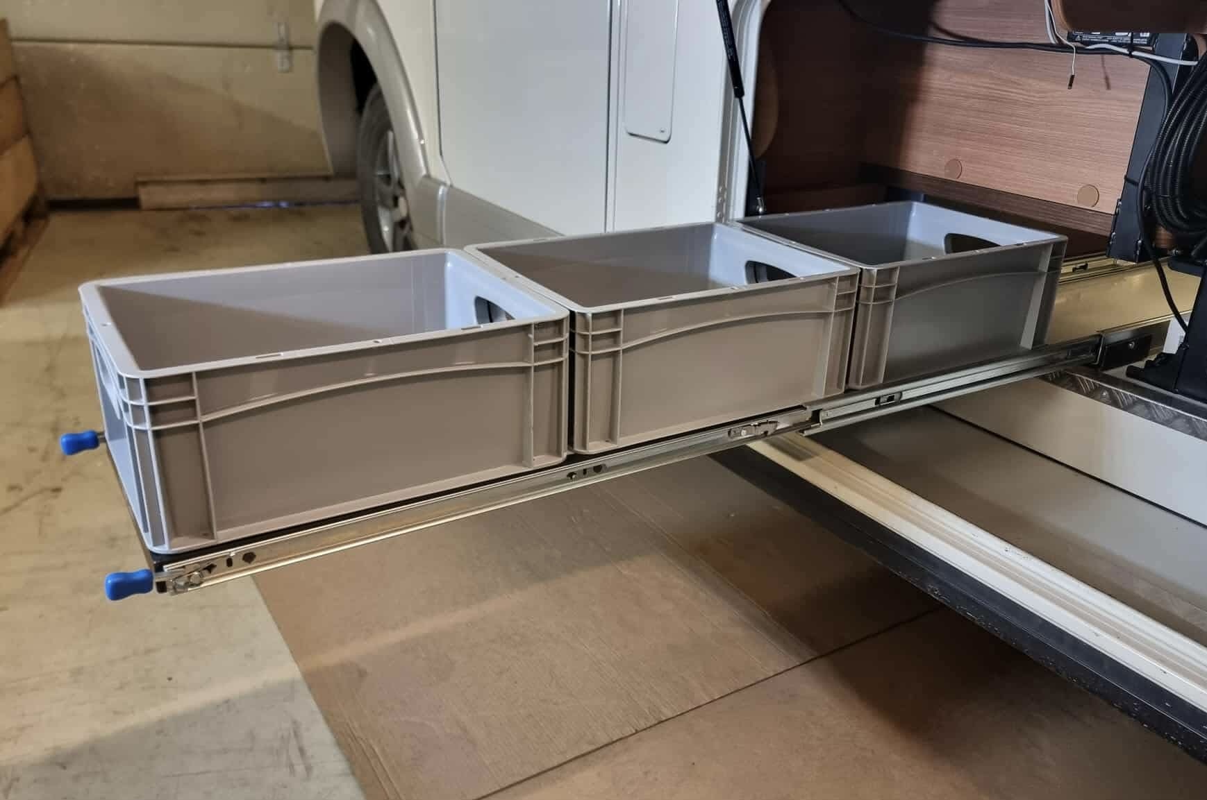 Starflex Euroslider uttrekkssystem for Eurobokser montert i flere høyder i bobil